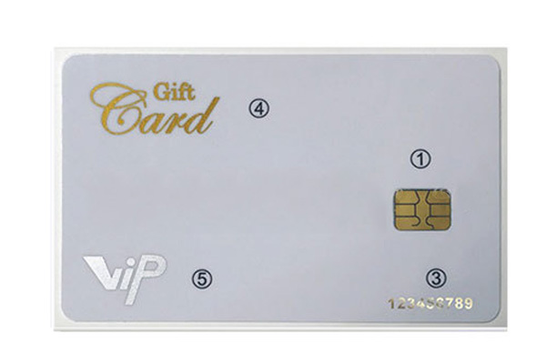 1、4442接觸式芯片 3、金色平碼  4、絲印金  5、絲印銀